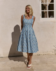 Inspired by a vintage 1940s tea dress, the Diana print brings classic rose florals into the now, with playful blooms in crisp blue.